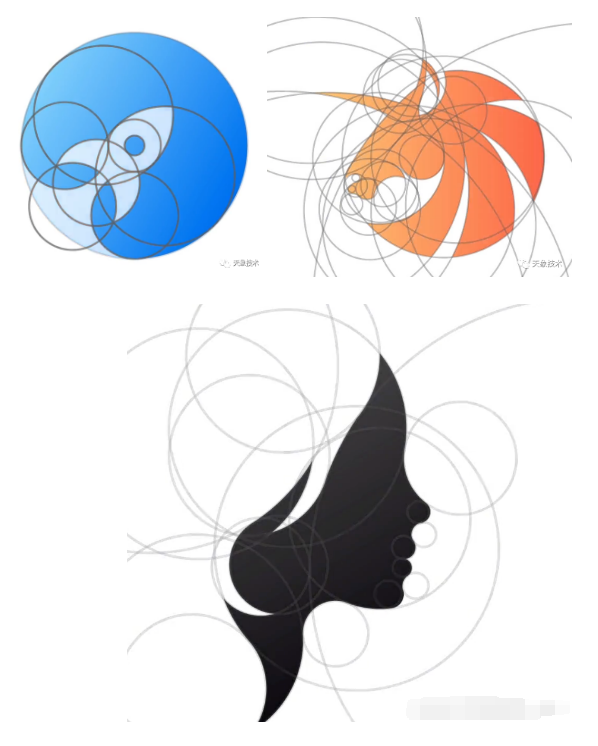 只用规则的正圆来切出形状,你会发现,其实一个简单的图形也可以做到规范化,当你能够比较熟练的掌握这种技法,就能绘制出想要的任意图形。也就会明白一个标志的背后可能是经过了多重运算的。除了规范化的制作,为什么不能再稍微大胆一点赋予它更多的联想呢