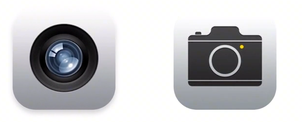 不过,“超写实”的效果反而成了高效操作的干扰,后来就出现了拟物化到扁平化的变革,试着把拟物图标沉余的装饰效果去掉,就变成了苹果ios7的扁平化风格。