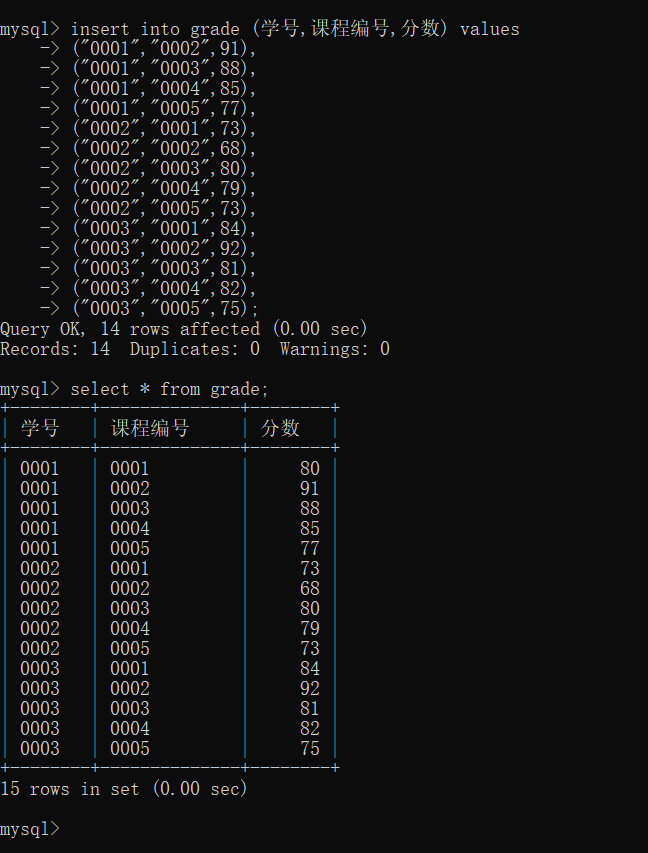 -> ("0003","马晓夏","女",'1995-05-12',"长岭市五一路763号");
