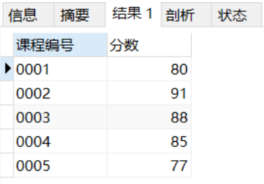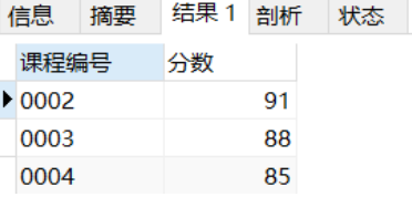 select 课程编号,分数 from gradewhere 学号='0001' and 分数>any(select 分数 from gradewhere 学号='0002');