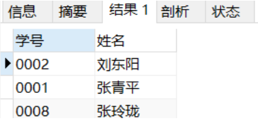 select 学号,姓名 from student_infowhere 姓名 like '刘%'unionselect 学号,姓名 from student_infowhere 姓名 like '张%';
