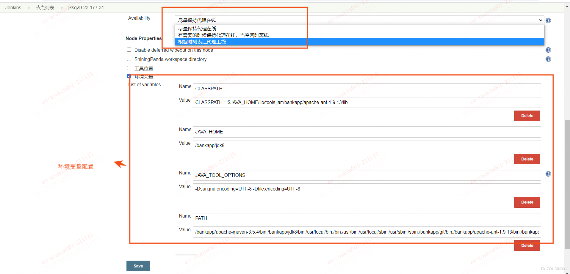 从节点必须要配置java 环境,以及任务执行需要的其他插件,比如说使用maven打包,则从节点必须要安装maven插件并配置好相关的环境变量,相关环境变量配置在jenkins 进程运行的用户目录下的.bash_profile 文件中。