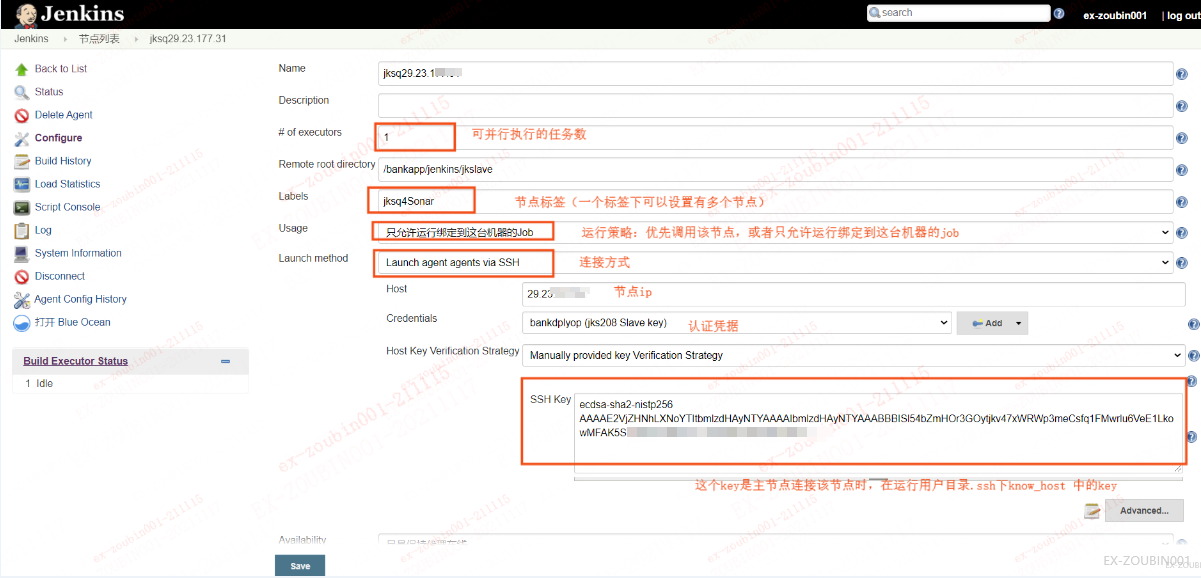 认证凭据配置,我这个这个认证凭据当时是公司用一个统一的公钥生成的,所以当我添加的节点是新申请的机器时,还需要将这个凭据的公钥推送到这个要添加的节点上。