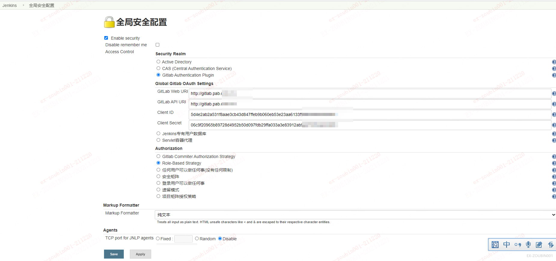 需要先在jenkins上面安装ldap插件,然后申请相关4a的登录信息,配置参考如下