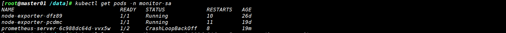这个问题出现的原因是因为断电关机,导致Prometheus 数据损坏,无法启动,因为我这个Prometheus 是测试使用的,直接找到数据存储的目录,将数据清空,再次部署Prometheus 就成功了。