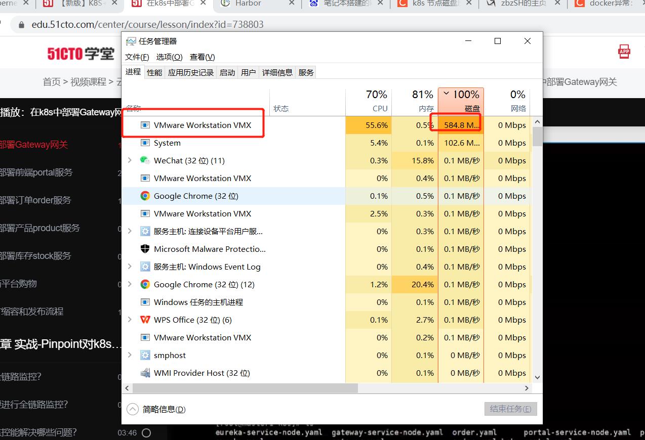 网上好多vmware workstation vmx 进程疯狂读取磁盘,导致虚拟机卡死,解决办法都试过了不行,后来新增一个node节点,问题得到解决,这个问题其实就是节点资源不足导致的