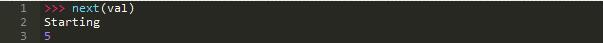 当第一次调用next()函数时,执行从函数的起始处开始直到下面的yield语句并在这里返回这个语句右边的值。