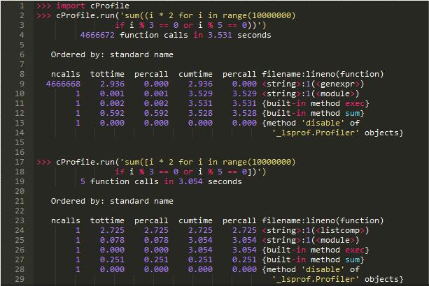 小心不要混淆列表推导式和生成器表达式的语法-[]和()-因为(区别)生成器表达式比列表推导式运行得慢(当然,