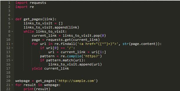 这里,执行时我们一次简单抓取一个单独的页面然后执行某些动作在该页上。要是不用生成器会怎么样?在同一个函数中
