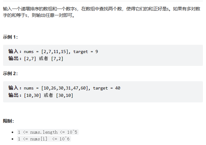剑指 Offer57.和为s的两个数字