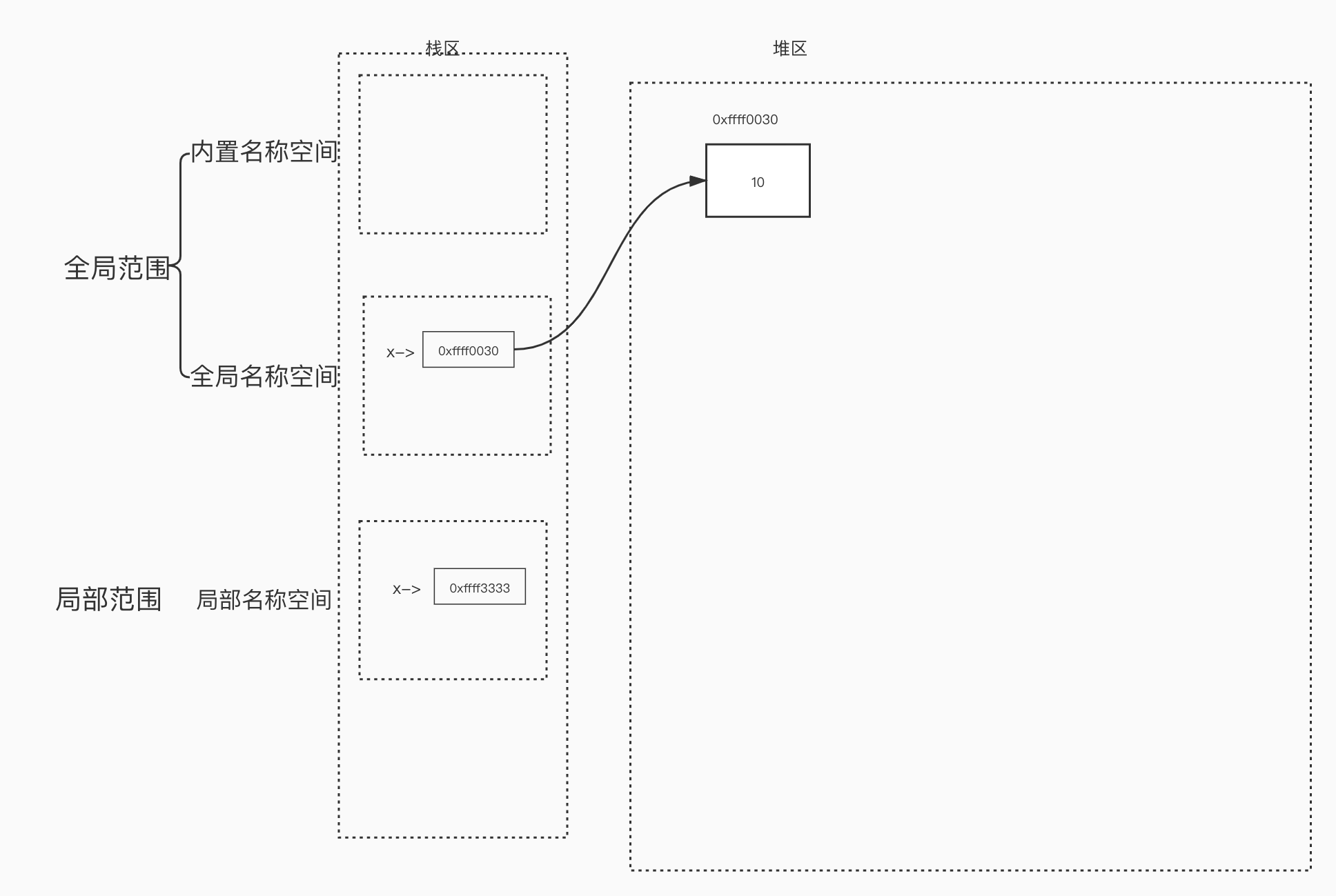有了名称空间之后,就可以在栈区中存放相同的名字,详细的,名称空间