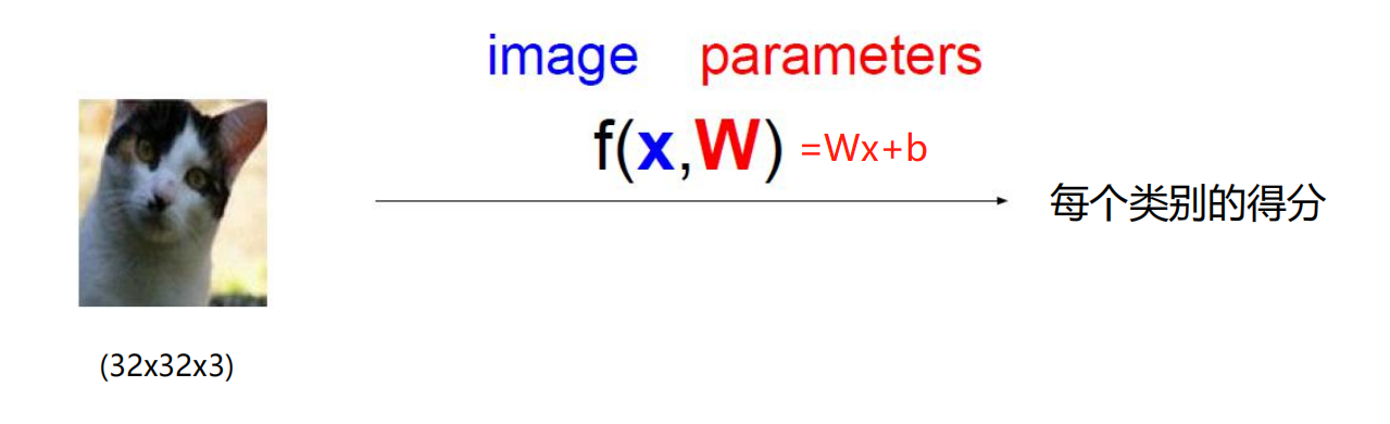 图片(32*32*3=3072) 经过 f(xi|W)+b 映射 每个类别的得分