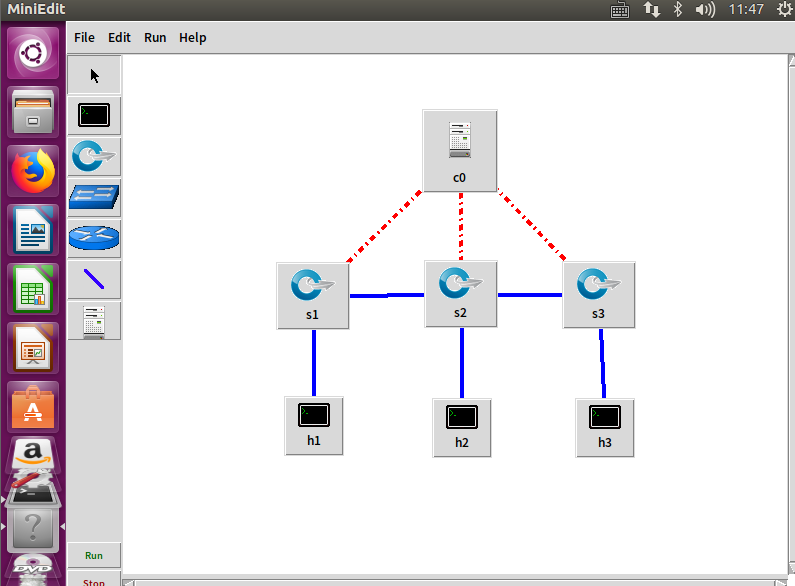 $ sudo mn --topo minimal // 最小拓扑,1 台交换机下挂 2 台主机 $ sudo mn --topo single,3 // 简单拓扑,1 台交换机下挂 n 台主机,此处 n=3,n=2 即为最小拓扑 $ sudo mn --topo linear,3 // 线性拓扑,交换机连成一线,每台交换机下挂 1 台主机,此处有 3 台交换机 3 台主机 $ sudo mn --topo tree, fanout=2,depth=2 // 树形拓扑,基于深度 depth 和扇出 fanout,此处均为 2