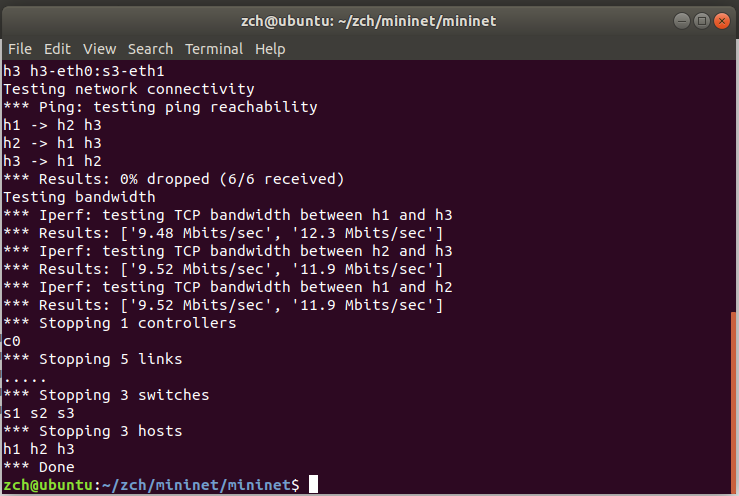 通过使用命令行创建、Python 脚本编写生成拓扑,熟悉 Mininet 的基本功能。