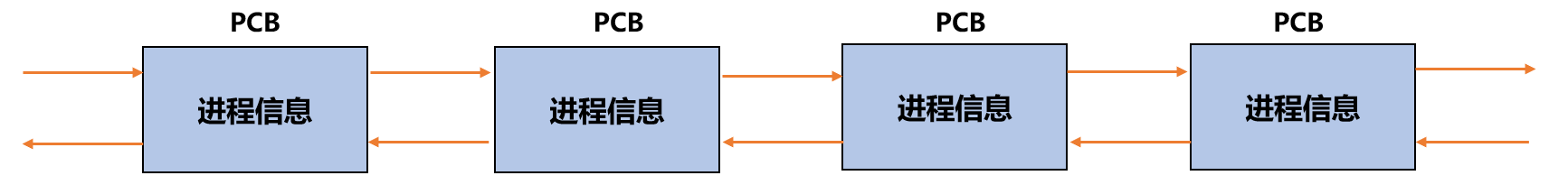 操作系统对每一个进程都进行了描述,进程描述信息形成了一个个的进程控制块(PCB),并将这些信息以双链表的形式组织起来。操作系统上新启动一个进程,实际上是先将该进程的代码和数据加载到内存,然后操作系统对该进程进行描述形成PCB,并将这个PCB插入到双链表中,当这个进程结束运行时,先将该进程的PCB从双链表中删除,然后操作系统在将内存中属于该进程的代码和数据进行释放。