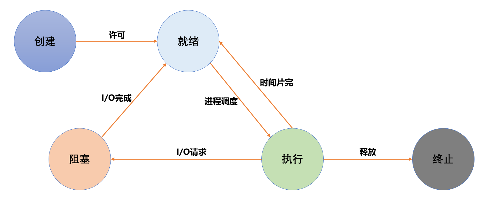 一个进程从创建启动到退出运行的整个生命周期,会经历多种状态,常见的基本状态如下: