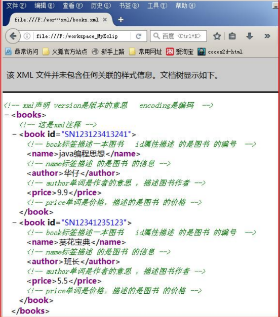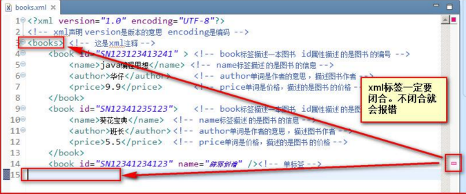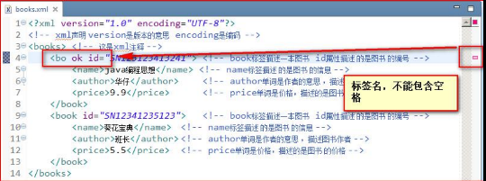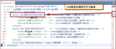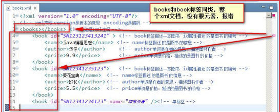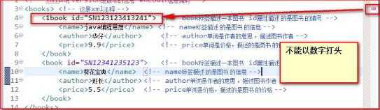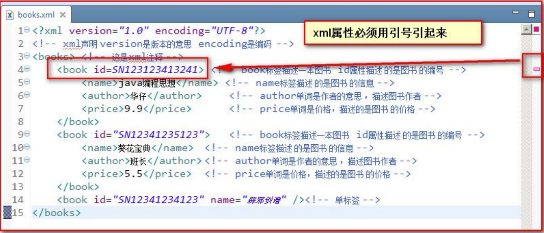 <book id="SN123123413241"> <!-- book 标签描述一本图书 id 属性描述 的是图书 的编号 -->