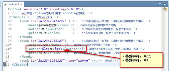 <author>班导</author> <!-- 描述书的作者信息 -->