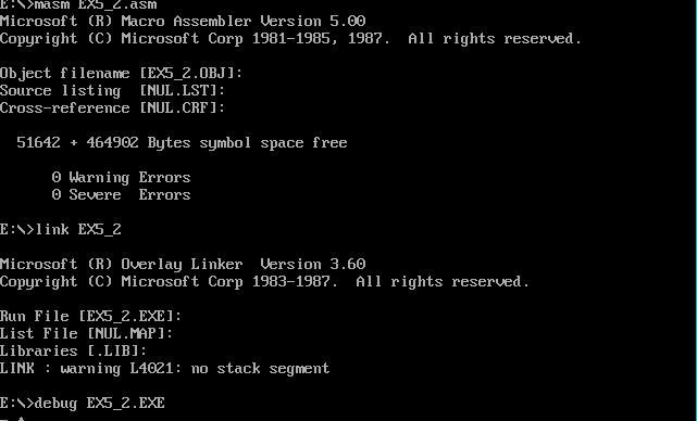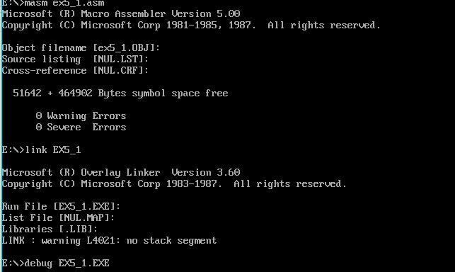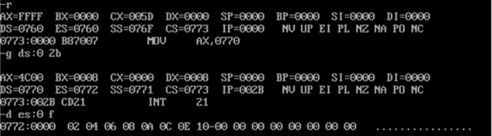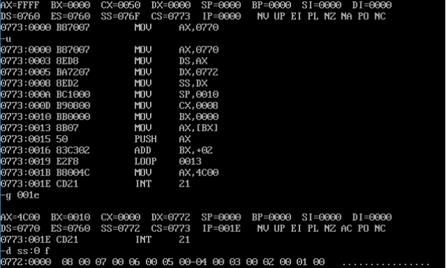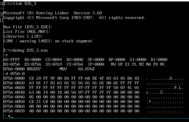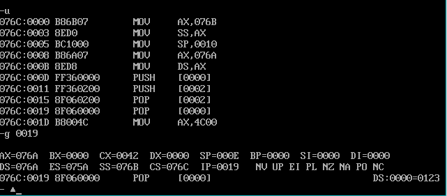 code段地址为x data段的段地址为x+3 stack段的段地址为x+4