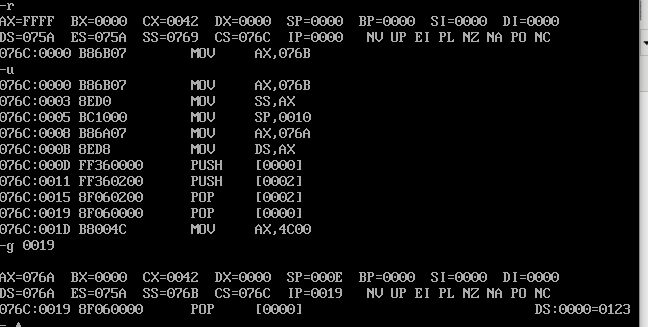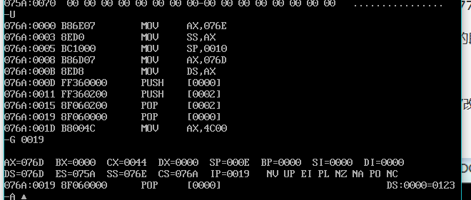 通过多次尝试了解了三个寄存器cs,ss,ds这三个段的段地址之间的关系