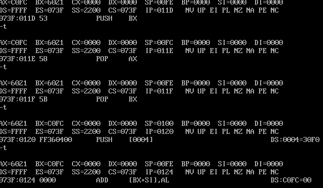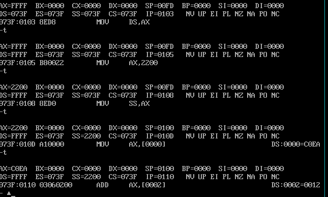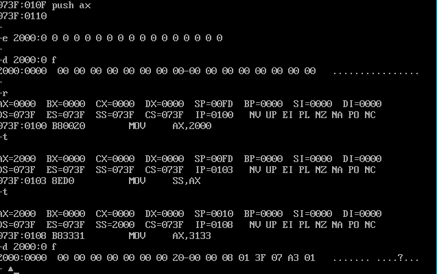 在执行t命令式时内存单元发生了未知变化,导致栈的数据也发生了变化