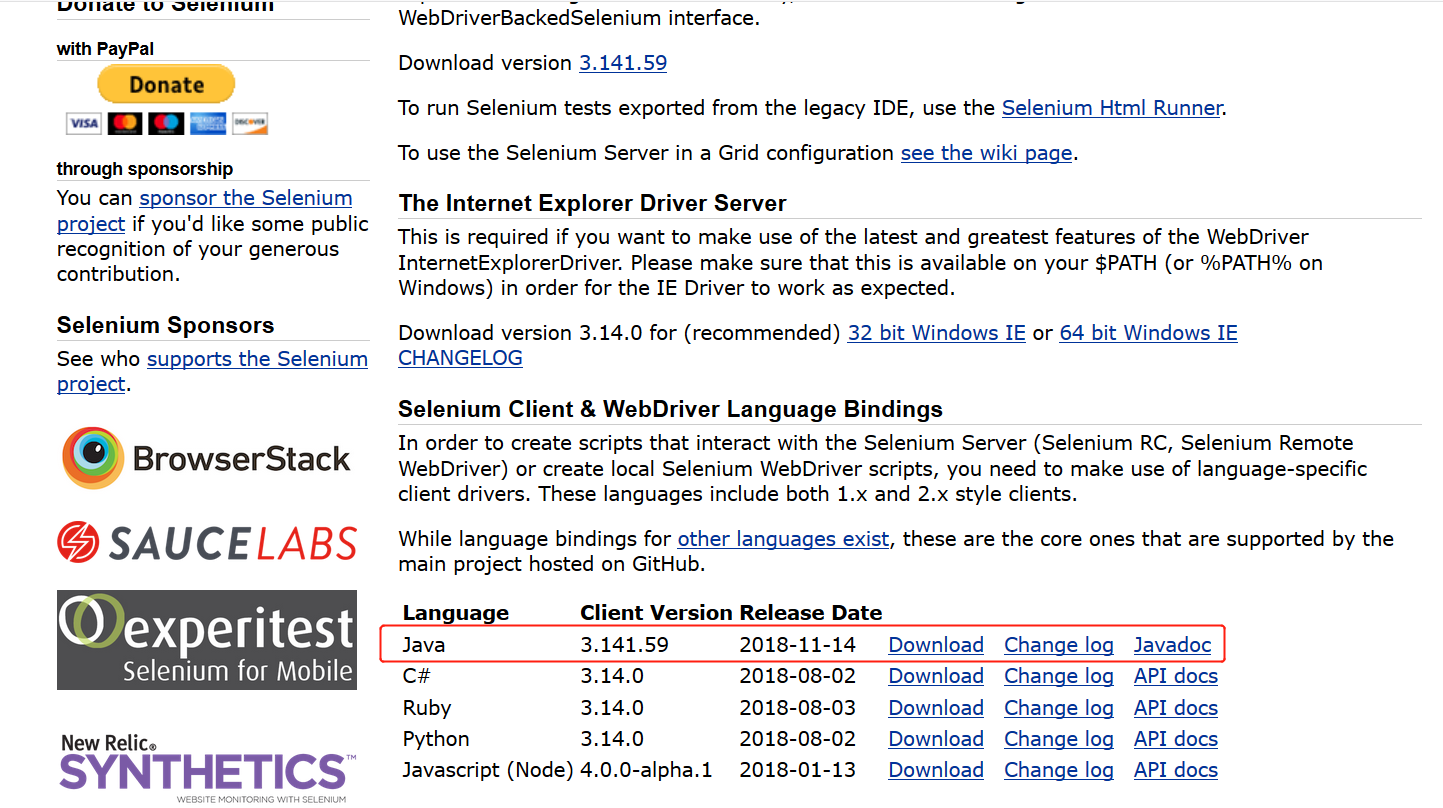 在下载页面:https://www.seleniumhq.org/download/,选择Java版本如图:
