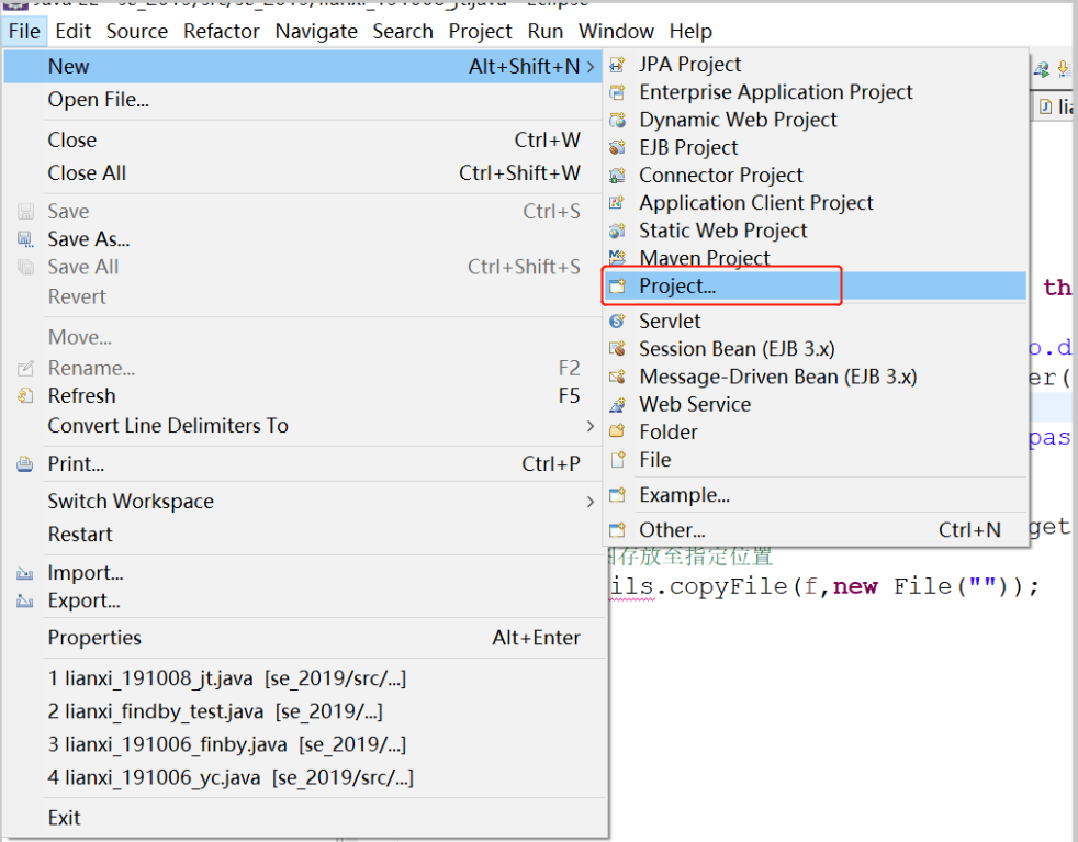 4.打开eclipse,新建一个project,如图: