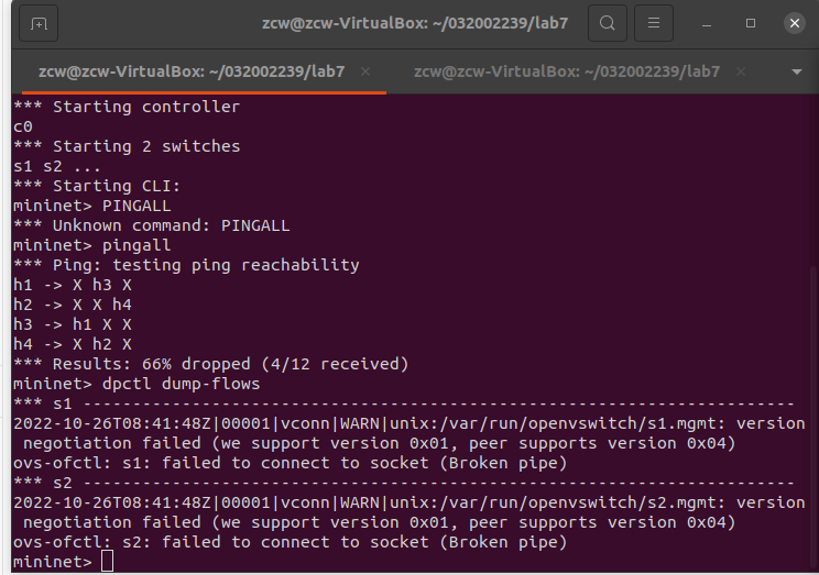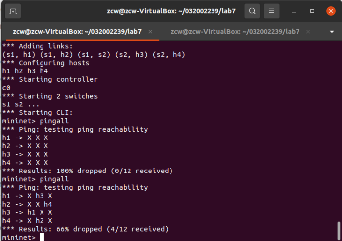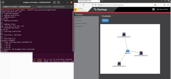 (1) 利用Mininet平台搭建下图所示网络拓扑,并连接OpenDaylight;