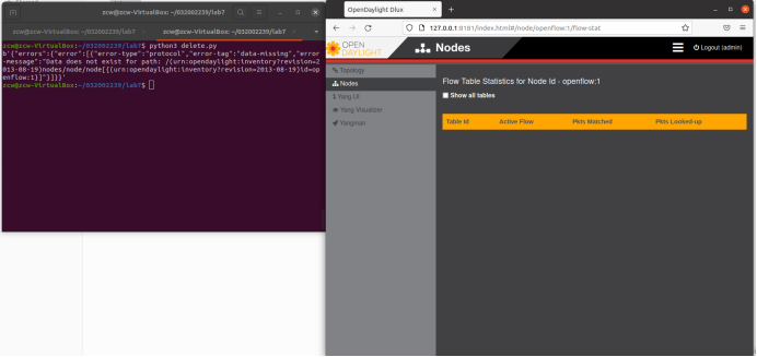 (2) 下发指令删除s1上的流表数据。
