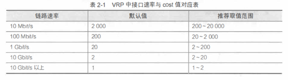 根端口所在的路径是去往根交换机的最优路径。衡量路径是否最优,一个重要的依据是路径开销。在之前描述STP术语的时候,提过路径开销和端口开销两个概念,而路径开销即为该路径上所有出端口的端口开销的总和。端口的开销和端口的带宽有关,带宽越高,开销越小,如表所示: