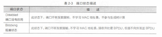 除了端口角色之外, STP同样对于端口的状态进行了定义,如表所示: