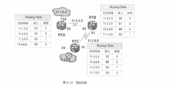 触发更新机制是在路由信息产生某些改变时立即发送给相邻路由器称为触发更新的信息。路由器检测到网络拓扑变化后,立即依次发送触发更新信息给相邻路由器,如果每个路由器都这样做,这个更新会很快传播到整个网络。如图所示,网络11.4.0.0不可达了,路由器RTC最先得到这一信息,于是路由器RTC立即通告网络11.4.0.0不可达信息,路由器RTB接收到这个信息,就从so口发出网络11.4.0.0不可达信息,路由器RTA从EO口通告此信息,环路问题也就避免了。 ![]()  使用触发更新方法能够在一定程度上避免路由环路发生。但是,仍然存在以下两个问题。 - 包含有更新信息的数据包可能会被丢掉或损坏。