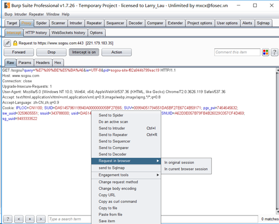 使用burpsuite抓一个包,之后右键选择send to sqlmap栏