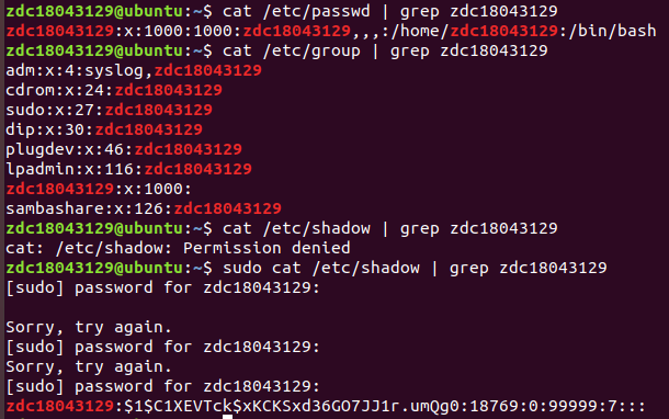 1)如何在与用户有关的三个文件中查看当前用户的信息?