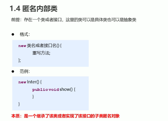 成员内部类、局部内部类、匿名内部类,匿名内部类的使用