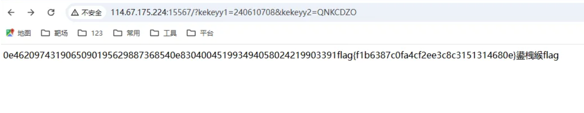 接下来就是md5的弱比较(有两个等于号),用数组或者md5值相同的两个数字(0e科学计数法绕过)。