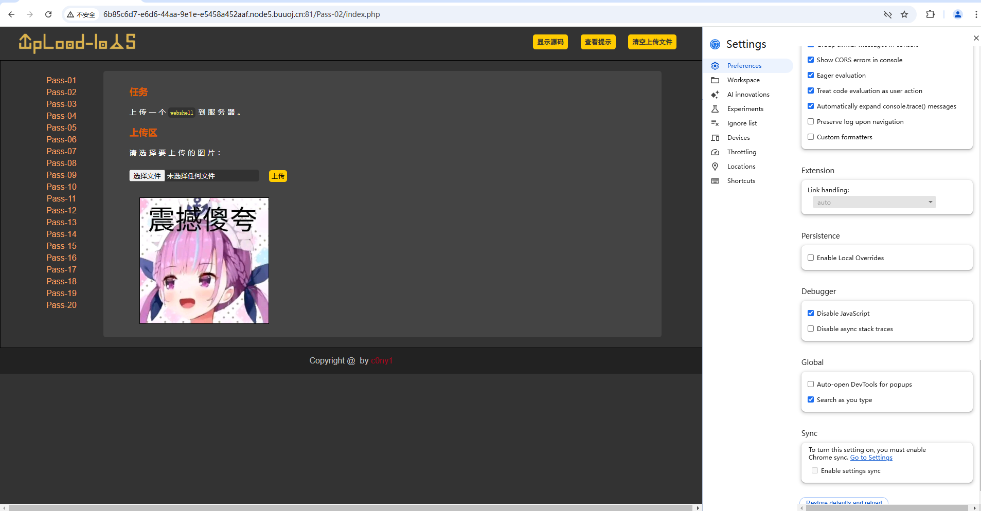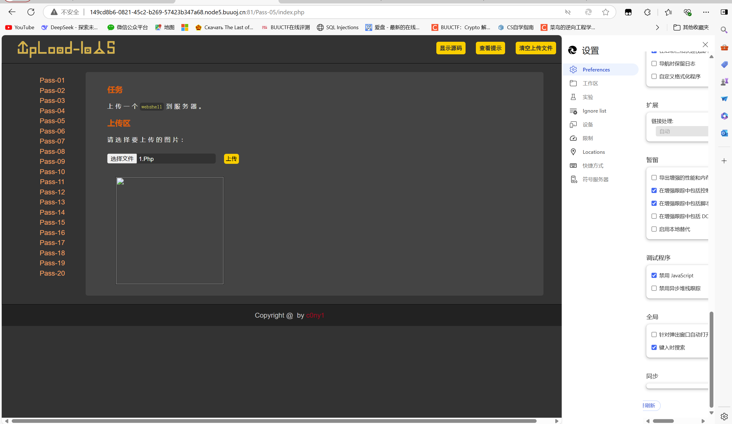 发现全是get请求抓不到post传参上传一句话木马的包,合理猜测是不是前段验证,F12禁用JavaScript验证试试看