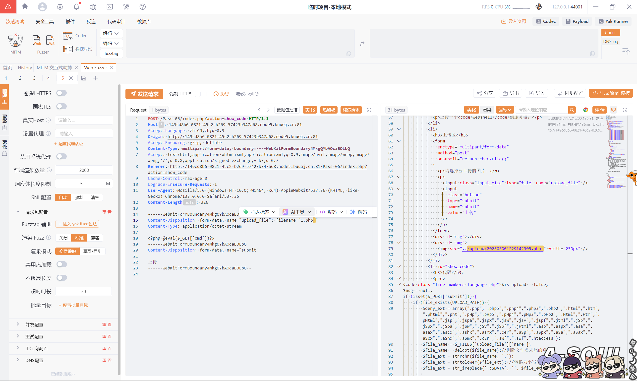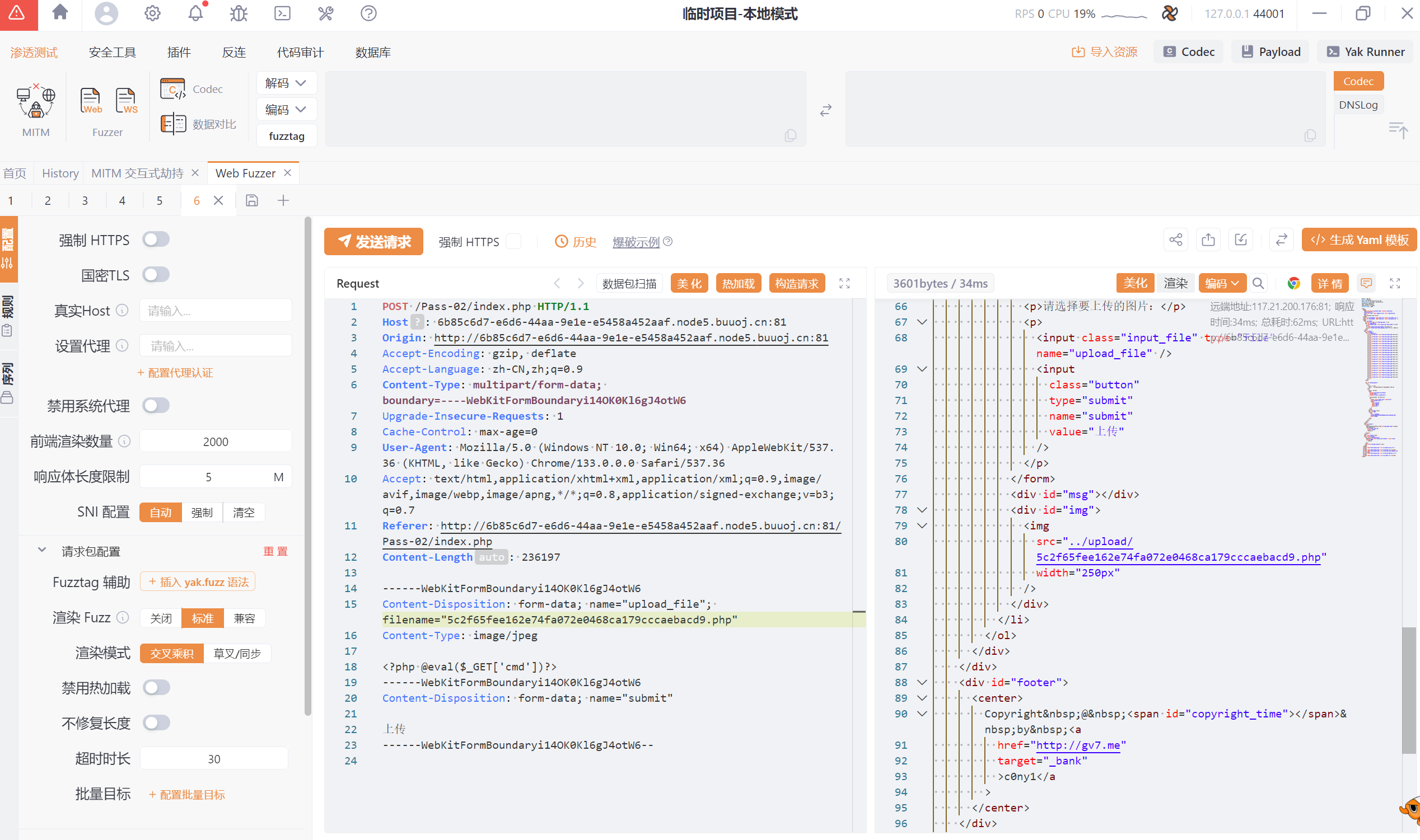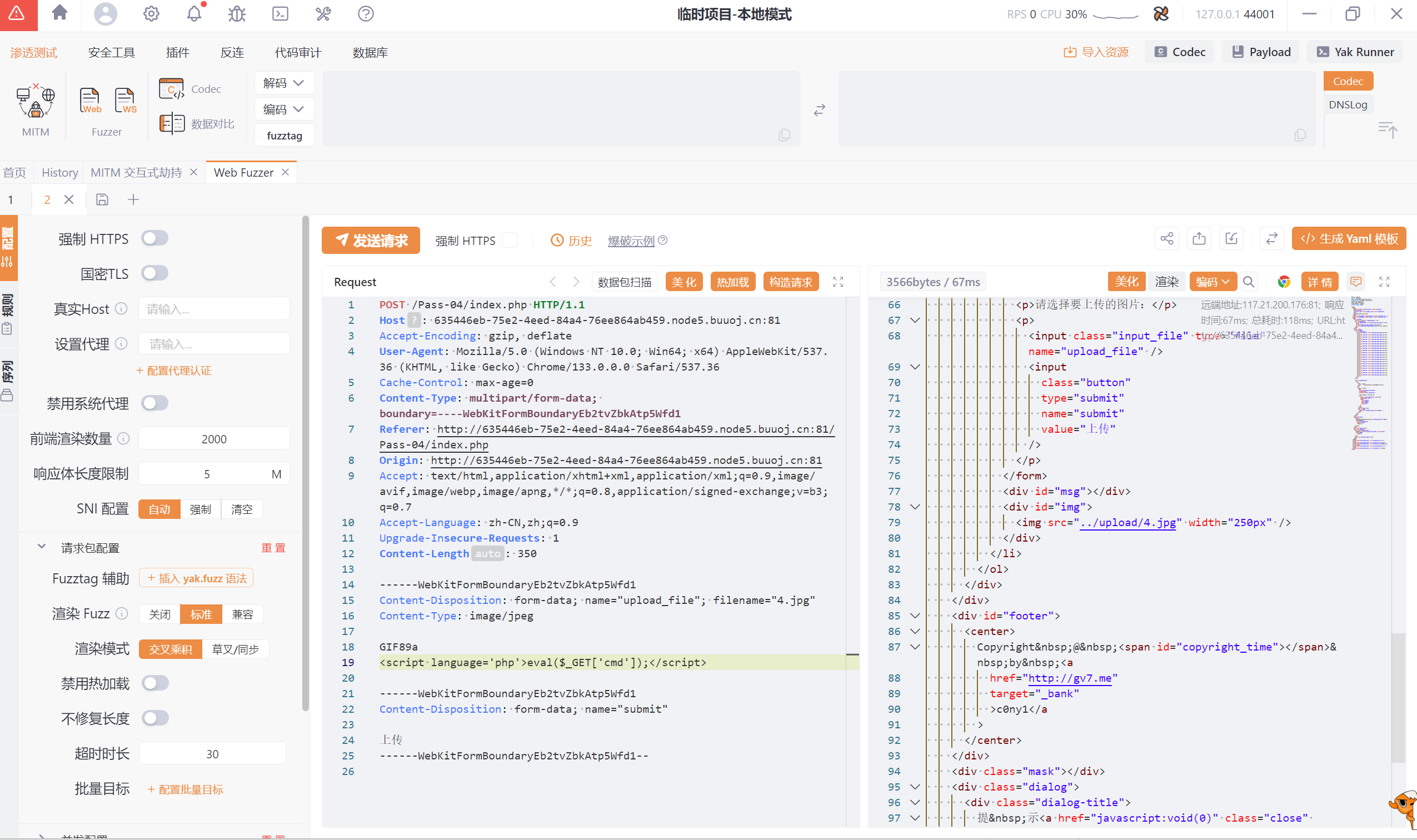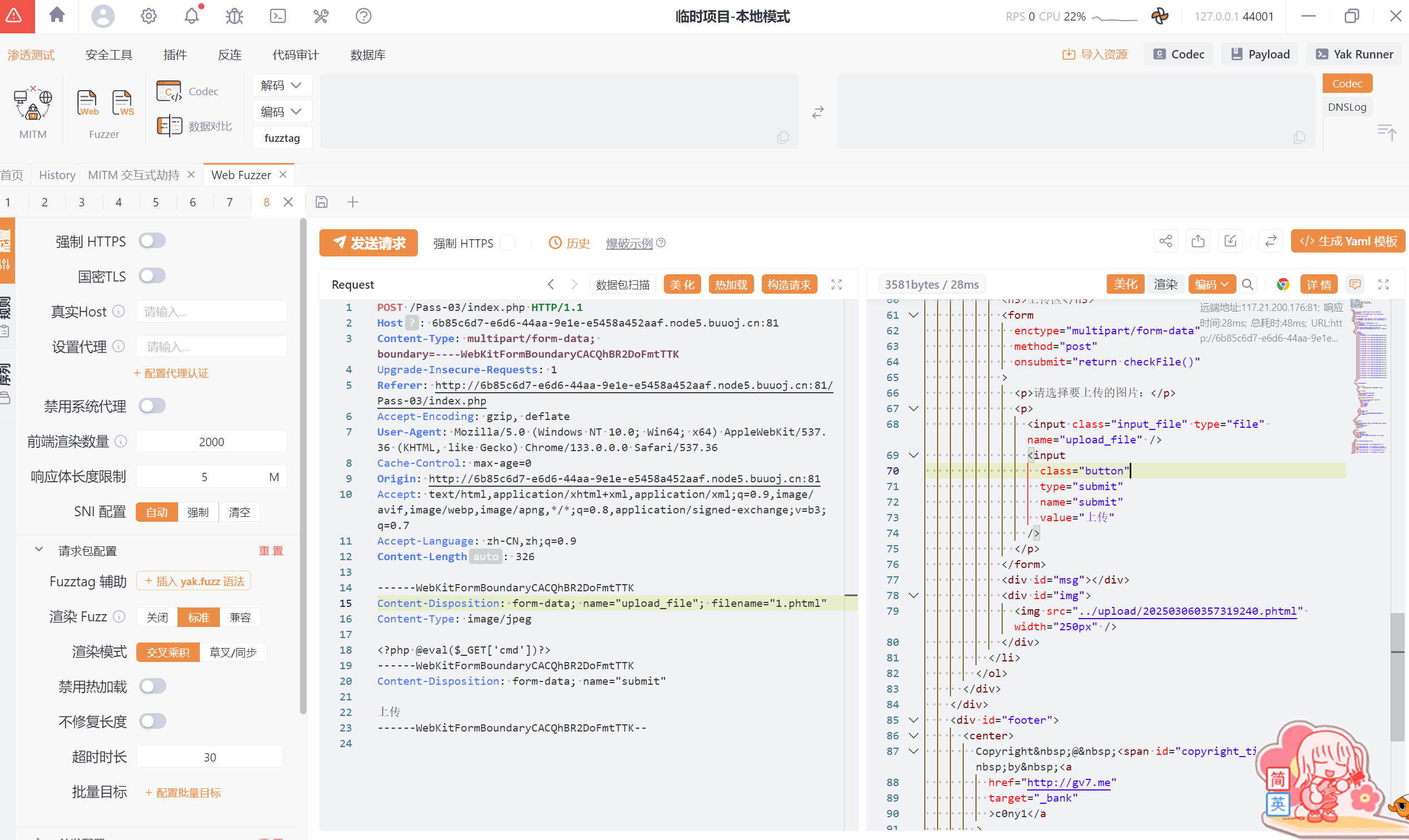 同理,是不是我们上传一个图片(此时通过了前段白名单验证是可以抓到包的)再抓包,修改图片内容为一句话木马也可行?