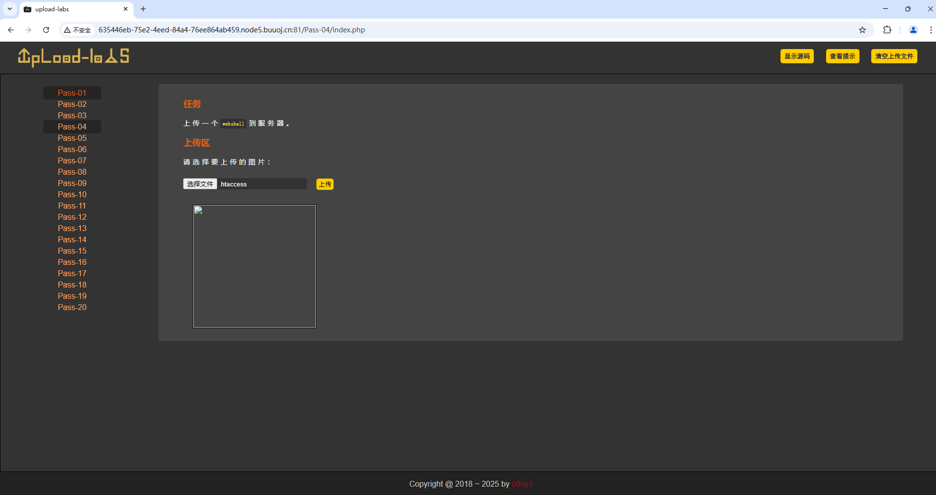 简而言之我们可以撰写.htaccess文件的内容来使我们上传的文件能够被作为php文件解析,题目又要求我们上传图片,那我们就可以先上传.htaccess文件再上传图片马