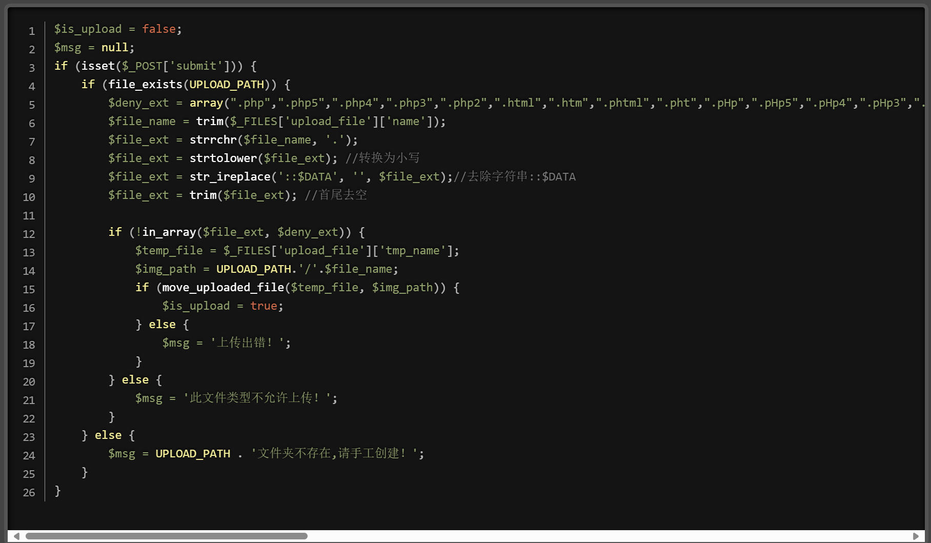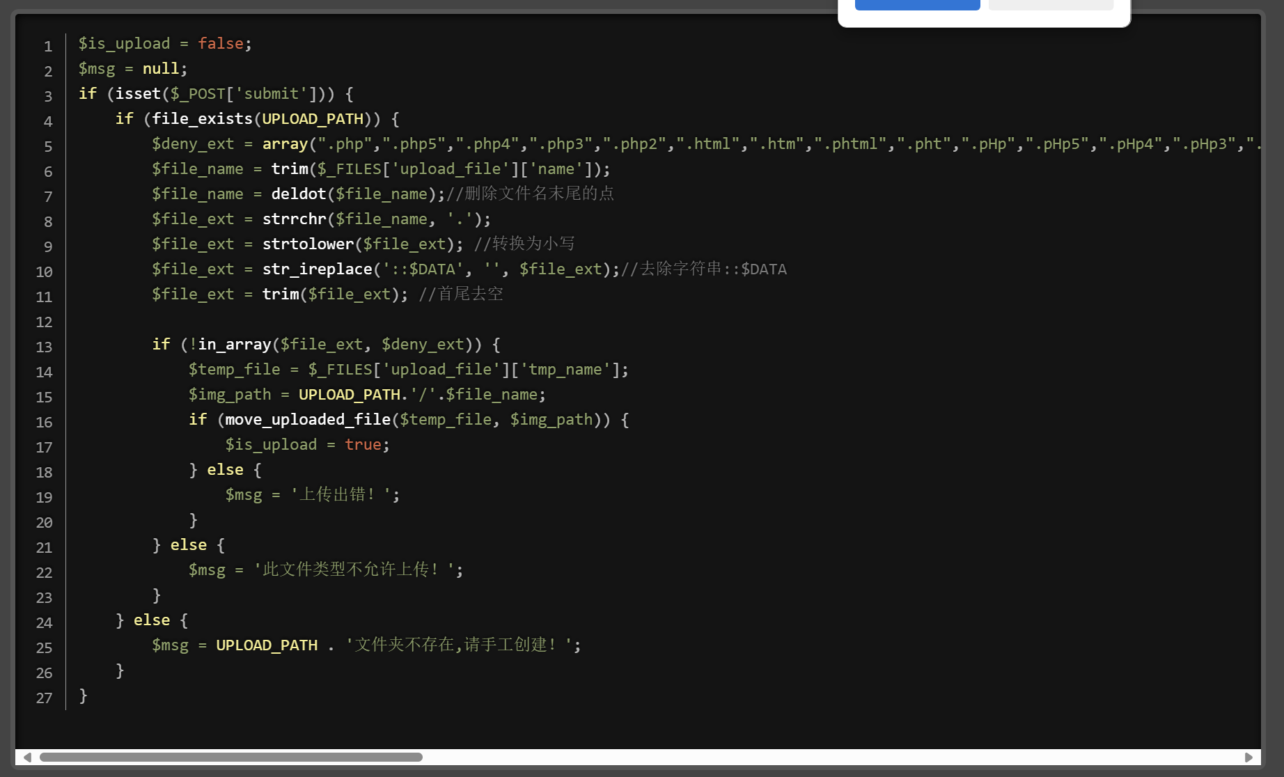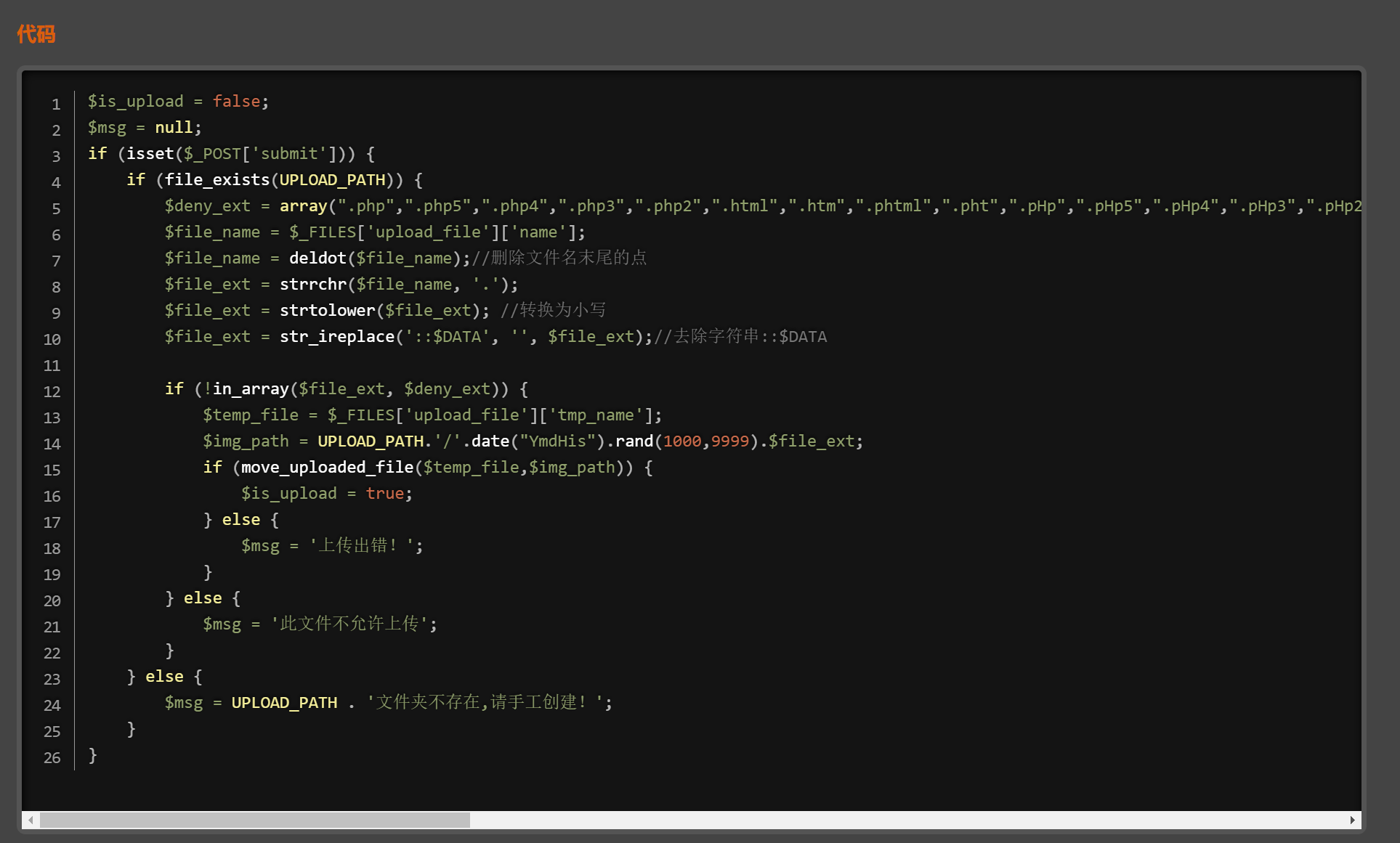 $file_ext = str_ireplace('::$DATA', '', $file_ext);//去除字符串::$DATA