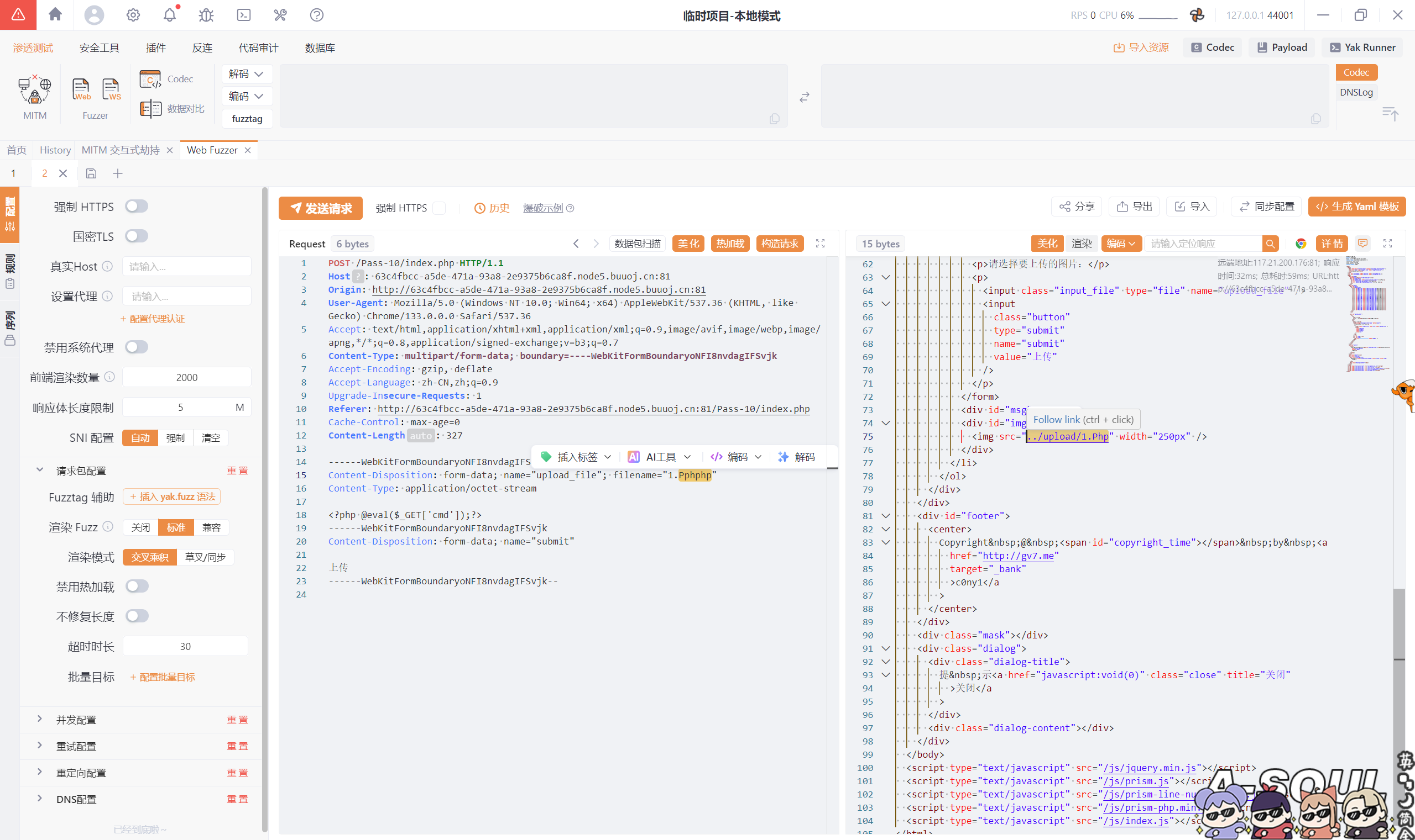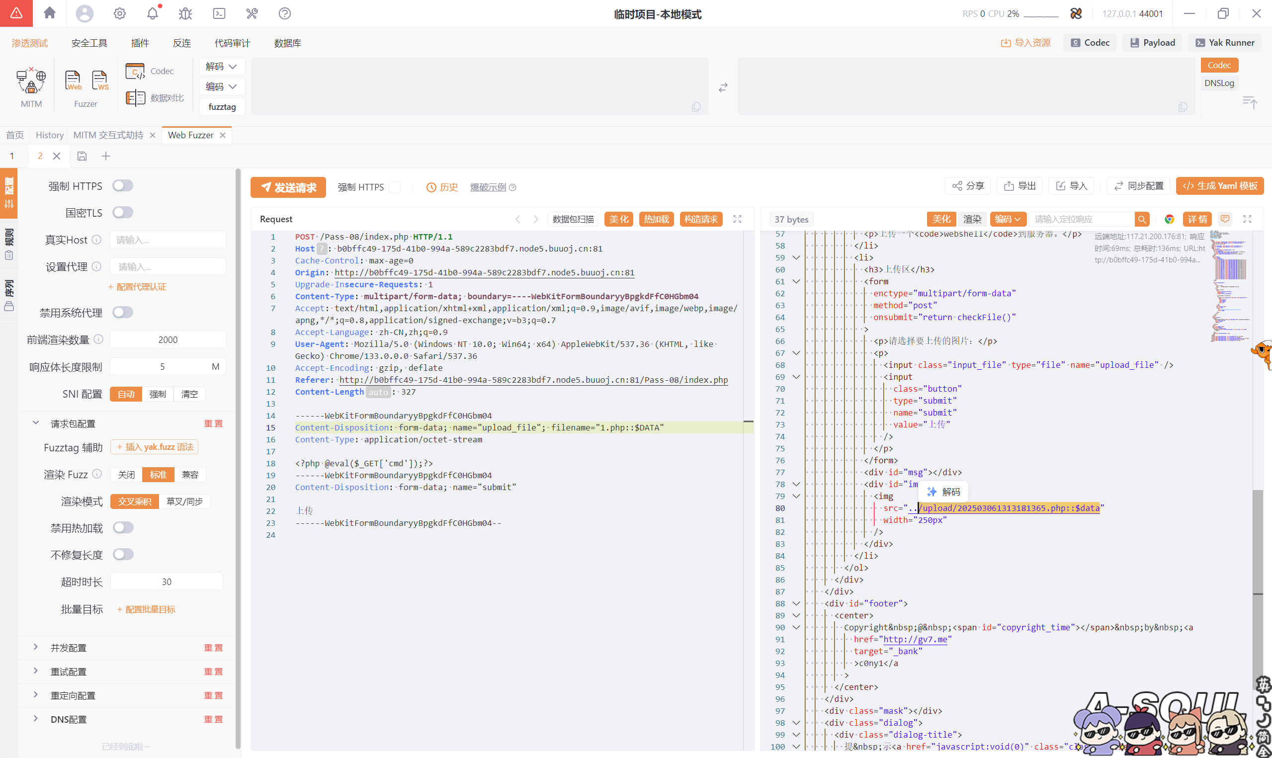 像上一道题一样上传时抓包再修改文件内容后缀,成功了