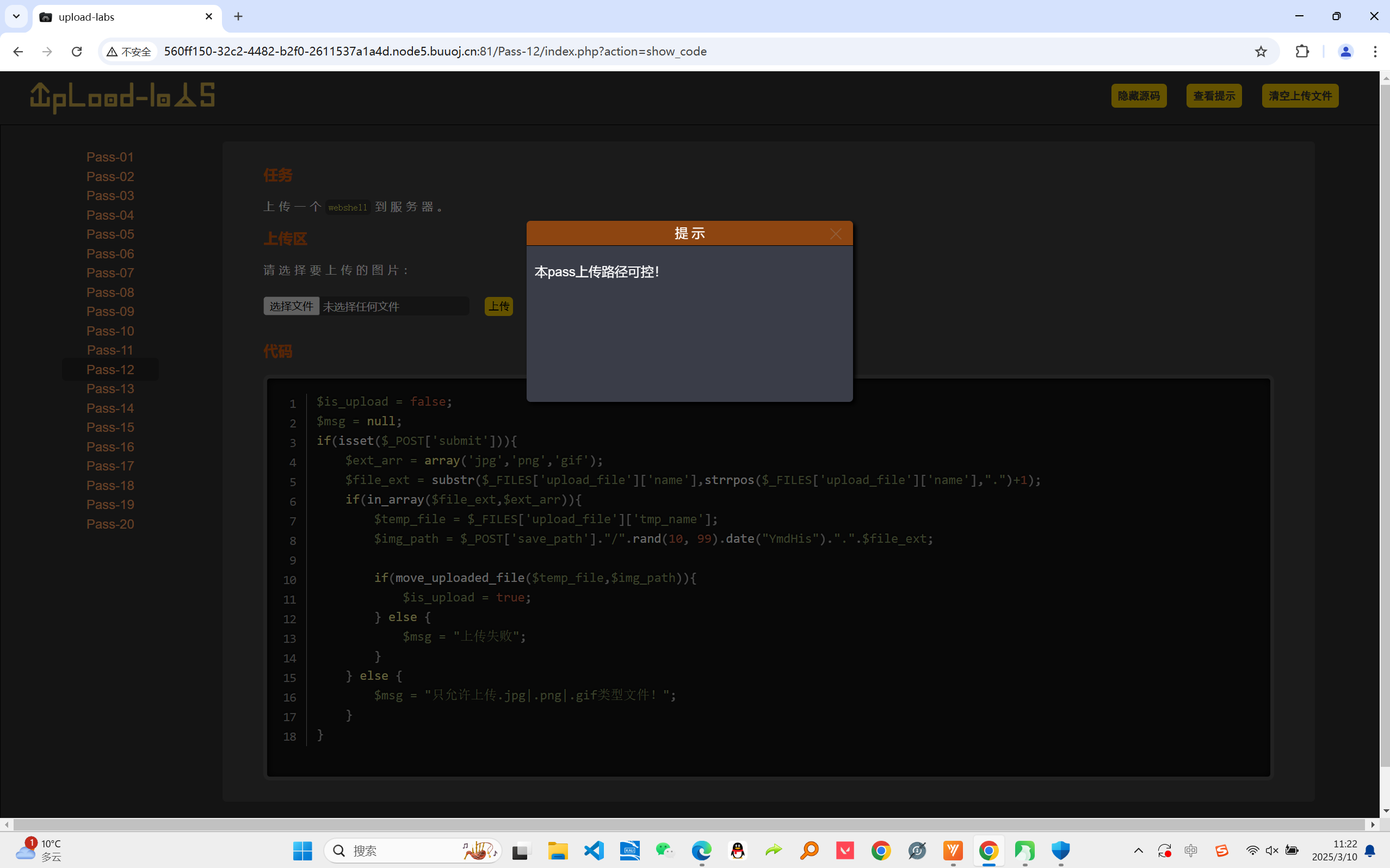 $ext_arr = array('jpg','png','gif');//说明本题只允许上传.jpg,.png,.gif后缀文件
