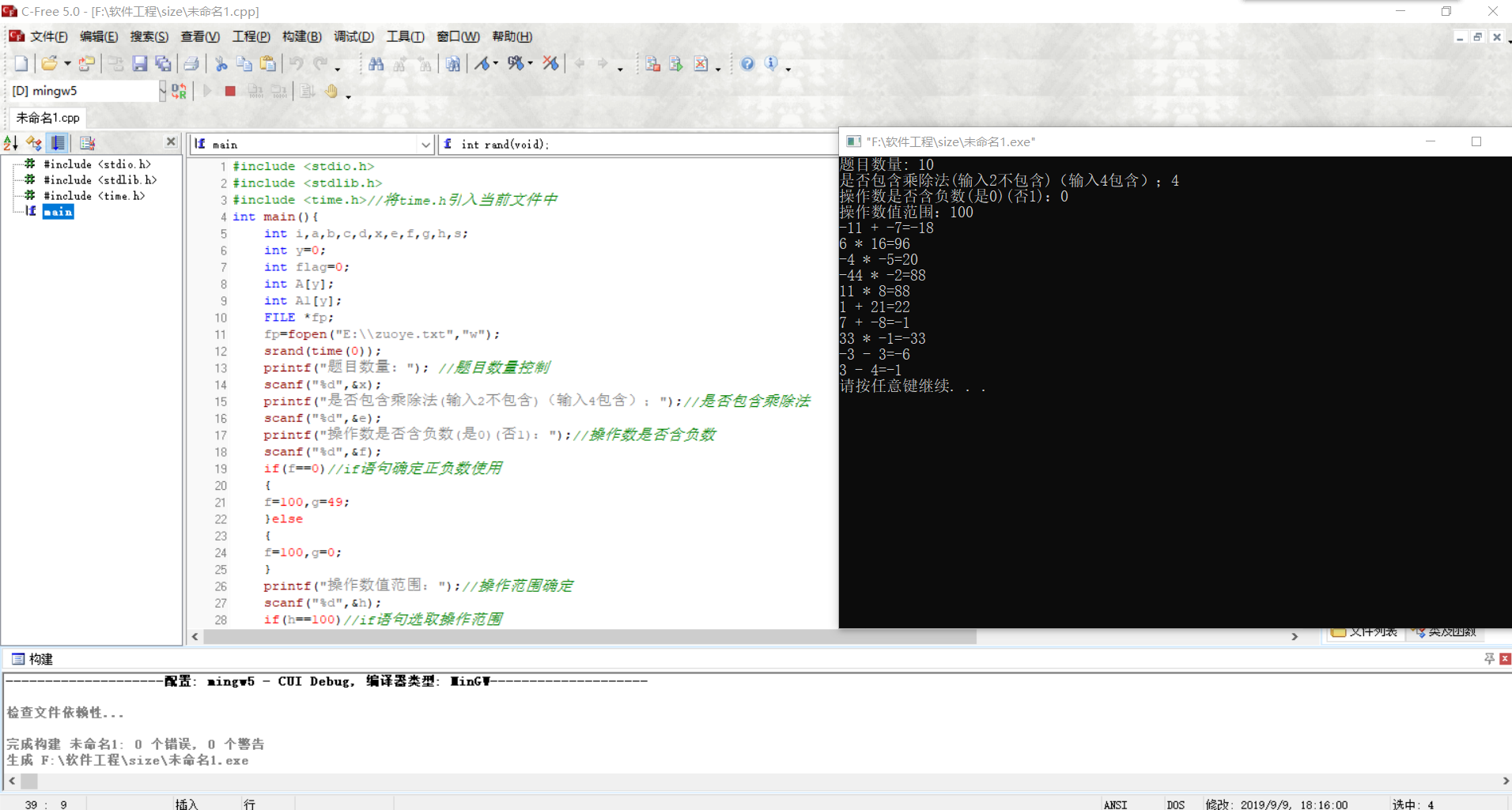 //四则运算要想每道题+ ,-,*,/都是随机的,我就想到了用分支函数,通过用if 语句,我感觉有点麻烦,然后我就想到了switch()函数,且通过随机产生0,1,2,3 四个数来进行分支,比较方便一点。