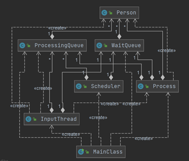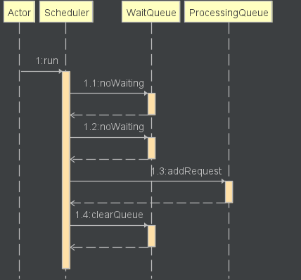 如果没有输入,调度器则等待,当有输入唤醒调度器后,调度器开始分配任务给电梯,第一次作业中只需直接把任务加给电梯就行,第二次作业则是遵循均摊的策略分配任务,第三次则按照不同的任务类型以及比例系数分配任务。与电梯线程的交互是利用每个电梯的共享变量processqueue来完成的,调度器拿到对应电梯的processqueue锁以后往里面加任务,notify电梯,再释放锁,接着电梯开始执行分配给自己的任务。第三次作业略微不同的是存在换乘,即电梯在拿到waitqueue锁以后往waitqueue里添加请求(来自换乘人员的请求),notify调度器,再释放锁。