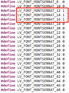 如果大家遇到此报错,可以打开lv_conf.h文件,找到相应字体的宏定义,并将其设置为1即可,如下图所示: