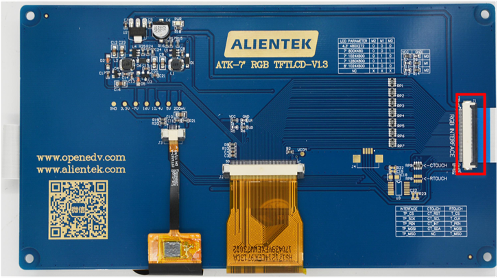 2)一款RGB LCD屏:本次以正点原子7寸RGB LCD屏来演示;