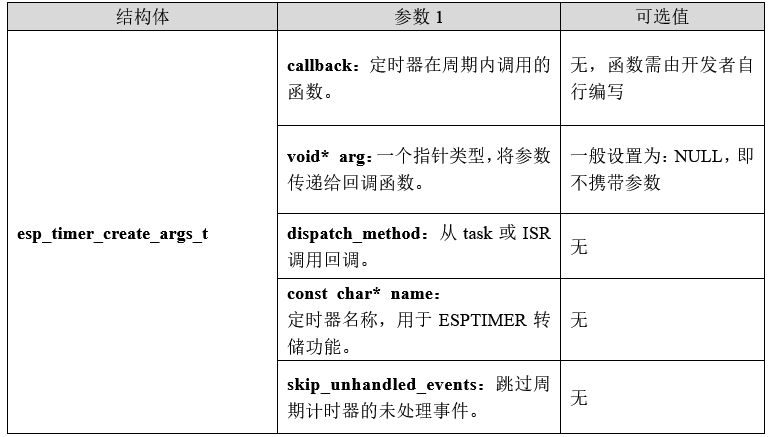 下面是esp_timer_create_args_t结构体的成员变量描述。