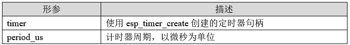 表14.3.2.3 函数esp_timer_start_periodict()形参描述