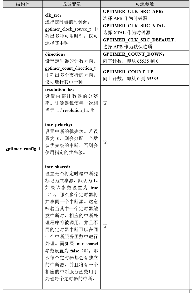 表15.3.2.2 gptimer_config_t结构体参数值描述